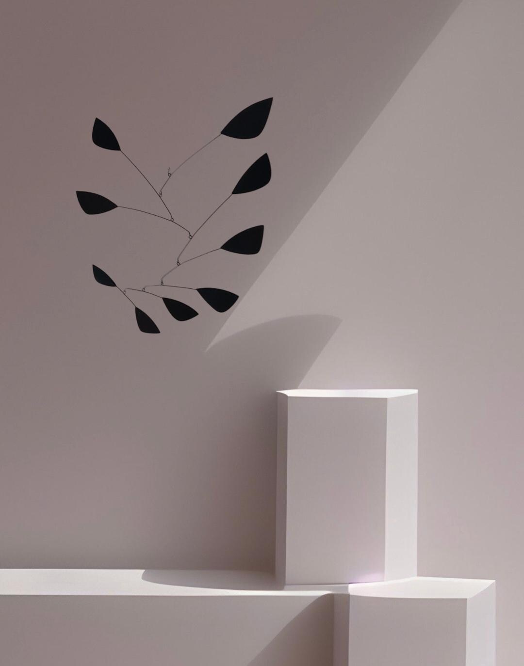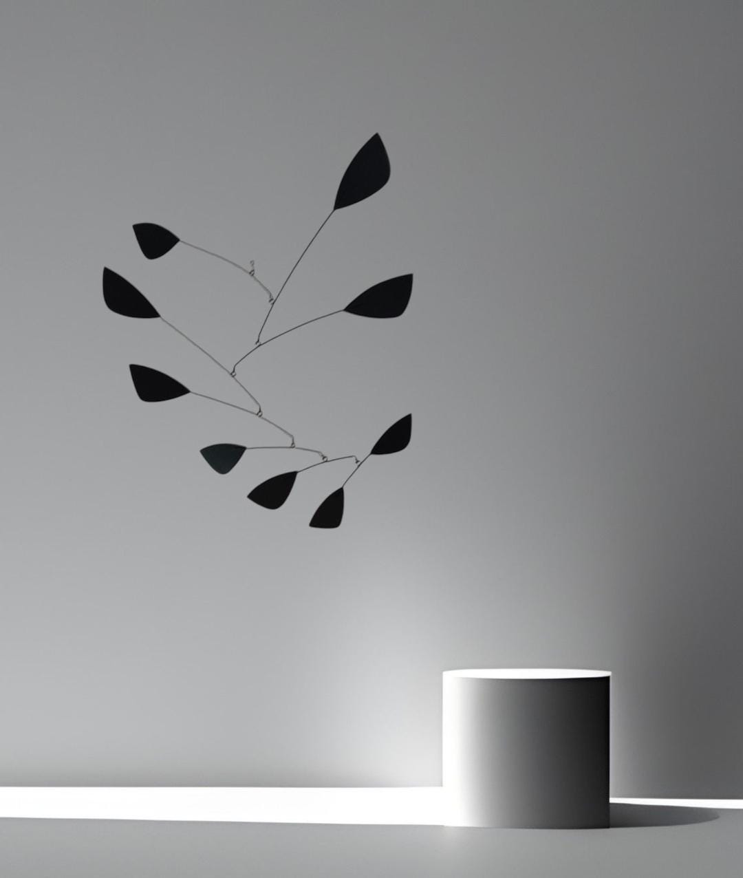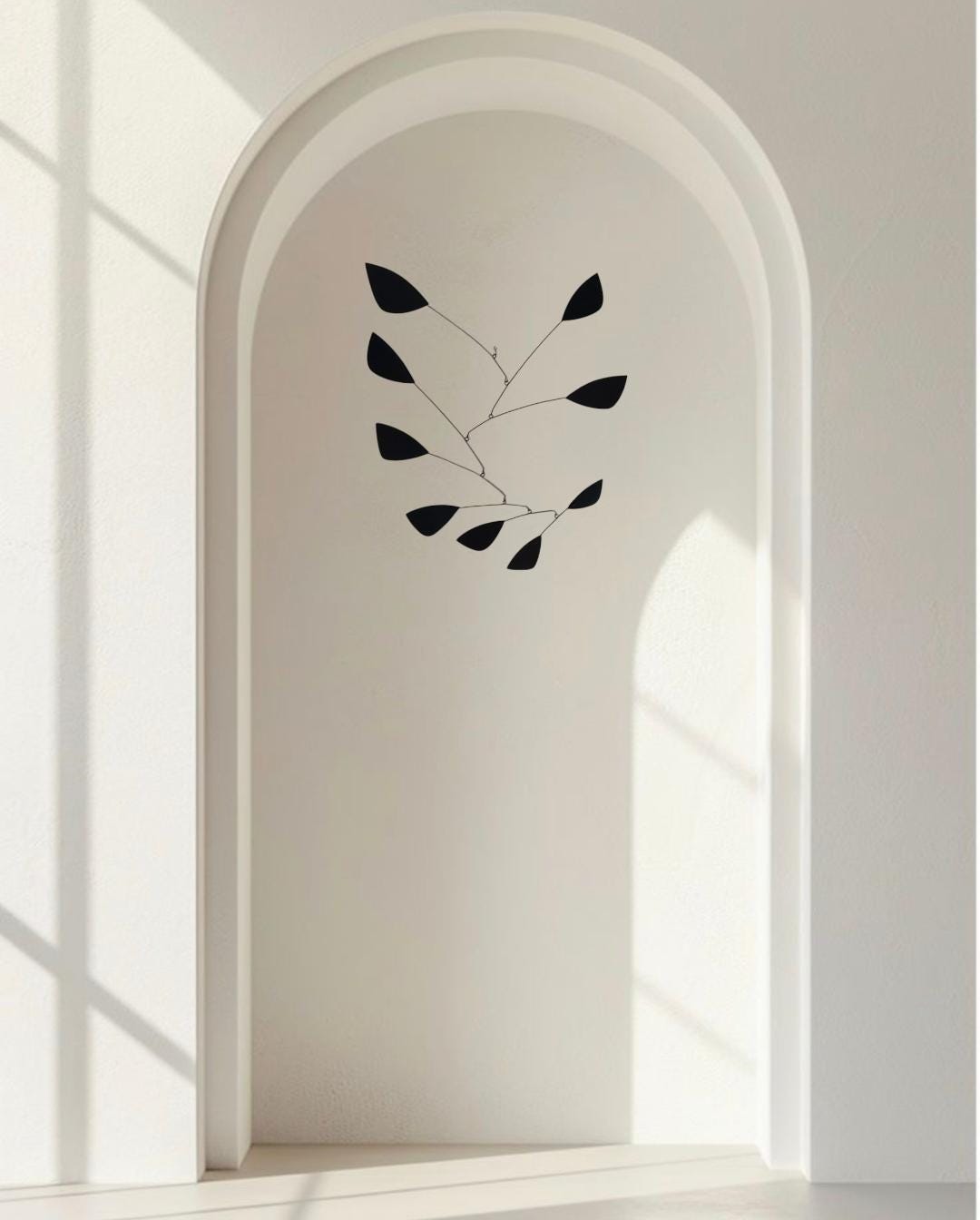 La sculpture cinétique "Black Astera" est un mobile suspendu au design contemporain minimaliste. Ce mobile est entièrement découpé, monté et peint à la main avec différents matériaux : feuille d'aluminium, fil de fer, accroche et peinture mate. Le mobile est livré avec 1.2m de fil de nylon et un crochet pour le suspendre.